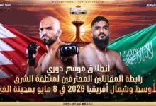 - انطلاق موسم دوري رابطة المقاتلين المحترفين لمنطقة الشرق الأوسط وشمال أفريقيا 2026 في 8 مايو بمدينة الخبر