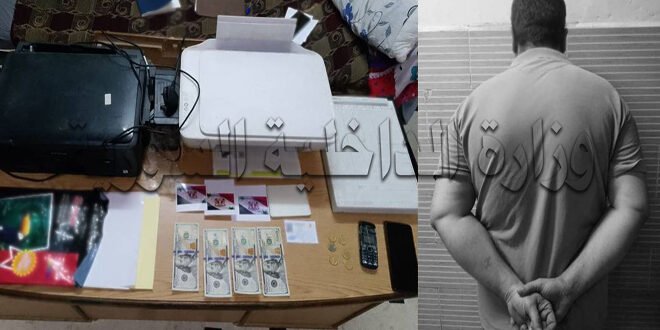 وذكرت وزارة الداخلية في بيان لها نشرته على صفحتها على تلغرام أنه بناء على أعمال المتابعة والمراقبة، تبين وجود شخص يدعى “أسامة . ح” في بلدة البحدلية، يقوم بطباعة بطاقات حكومية مزورة، وبعد تحري منزله من قبل قسم الأمن الجنائي في السيدة زينب أصولاً عثر فيه على أدوات يستخدمها في أعمال التزوير من طابعات وقصاصات بلاستيكية لتجليد البطاقات، وأوراق نقدية مزورة.