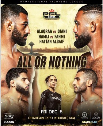 ويُعد الحدث ختاماً لموسمٍ حافل للبطولة الإقليمية التي تنظمها رابطة المقاتلين المحترفين ( PFL)، حيث سيتوج الفائزون في كل فئة بالحزام الذهبي وجائزة مالية قدرها 100 ألف دولار أميركي.