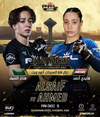 وتواجه السيف في هذا النزال المرتقب المقاتلة المصرية هايدي أحمد، في مواجهة تحمل طابعاً خاصاً كونها أول ظهور رسمي لها على المستوى الاحترافي بعد مسيرة ناجحة في منافسات الهواة.