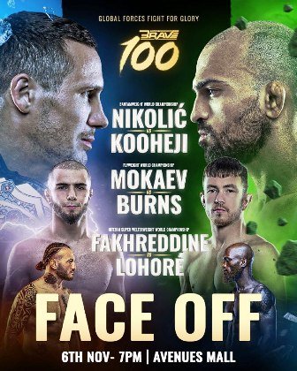 يشهد “الخميس” إجراء مراسم الفحص الرسمي للوزن والمواجهة “فيس أوف” بين المقاتلين المشاركين في بطولة BRAVE 100، وذلك عند الساعة السابعة مساءً في مجمع الأفنيوز.