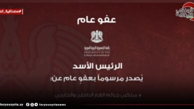لأجلك سورية – متابعة أصدر السيد الرئيس بشار الأسد مرسوماً تشريعياً بعفو عام عن جرائم الفرار والجنح والمخالفات المرتكبة قبل…