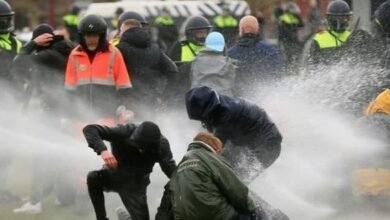 استخدمت الشرطة الهولندية اليوم خراطيم المياه لتفريق أشخاص تجمعوا في أمستردام اليوم للاحتجاج على استمرار القيود التي فرضتها الحكومة للحد…
